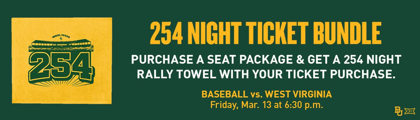 Good Morning, Baylor Fam. Take advantage of the 254 Night Ticket Bundle when Baylor baseball hosts West Virginia on March 13.