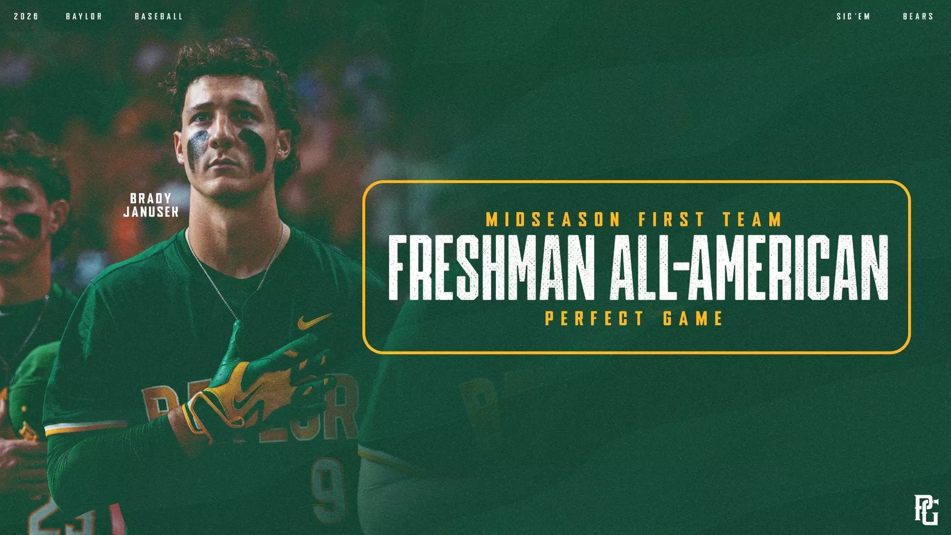 🔼 Early Impact. Baylor freshman outfielder Brady Janusek was named to Perfect Game’s Midseason Freshman All-America First Team. He is batting .327 with six home runs and 24 RBIs.